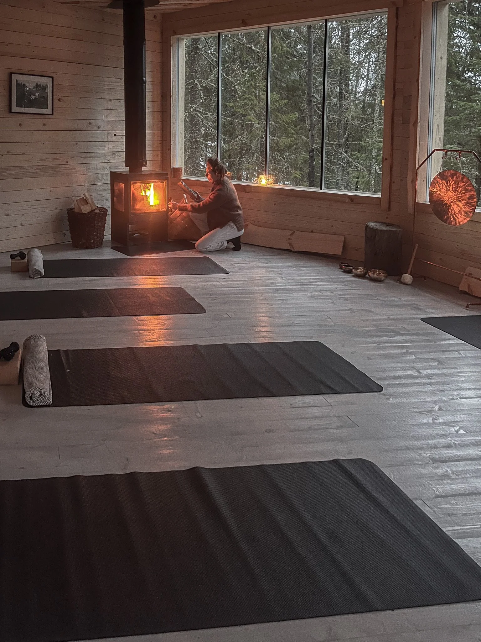 Joogaa ja hengitysharjoituksia luonnon keskellä.