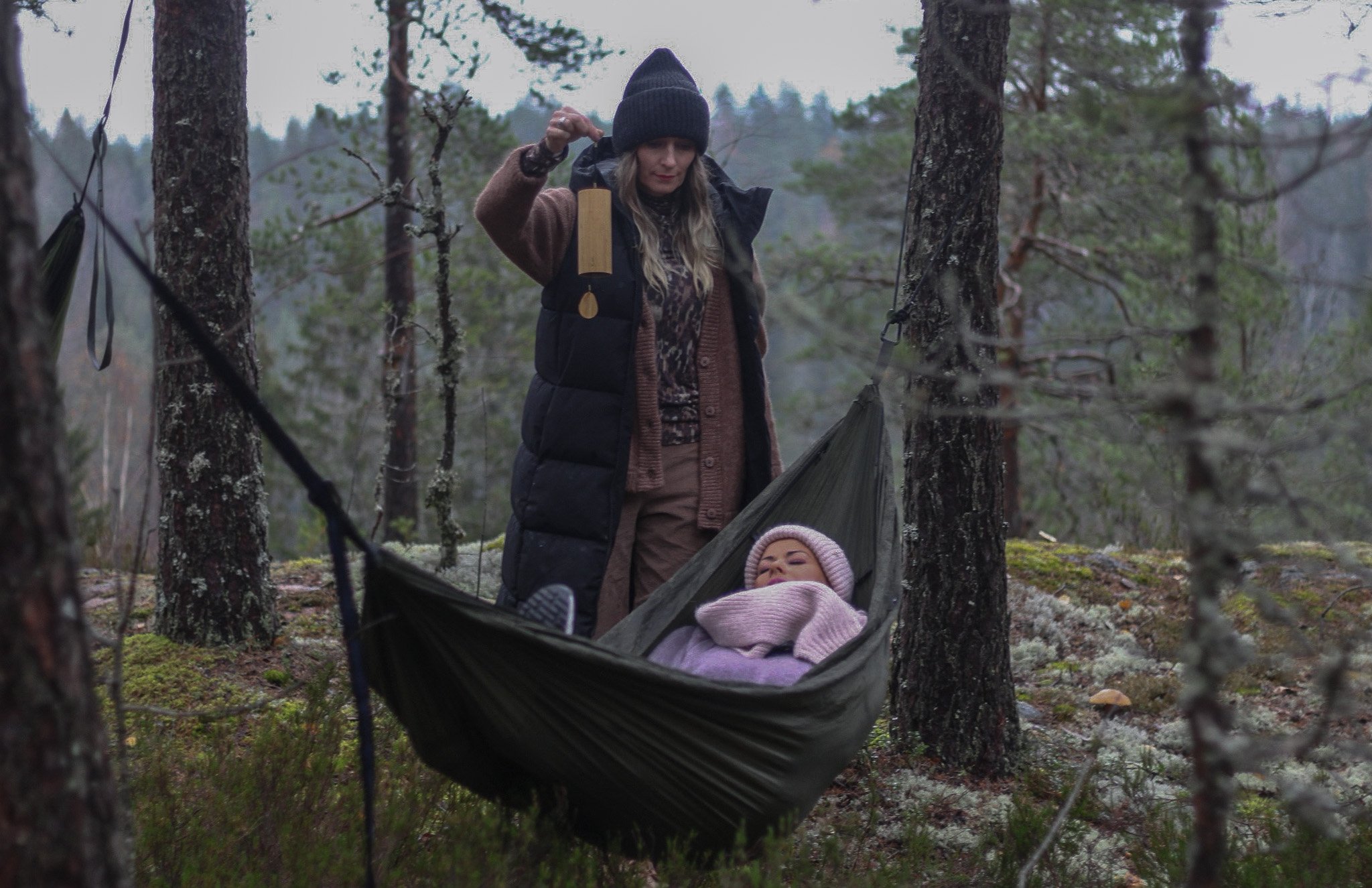 Rentoutumisharjoitus luonnossa riippumatoissa.